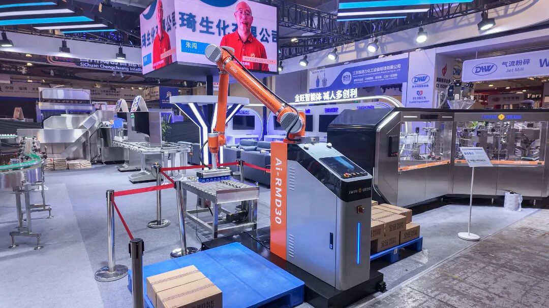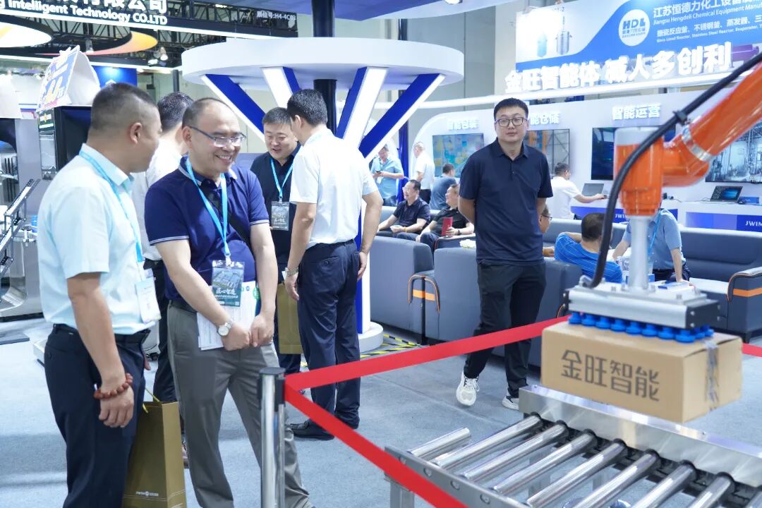 展会现场,金旺智能展台人头攒动,两款搭载核心AI技术的新品以其极具未来感的演示方式,瞬间成为全场焦点。多位深耕农化行业的资深客户亲临体验,在亲眼目睹了仅凭一句语音指令,产线便可自动完成规格切换的震撼演示后,纷纷表示高度认可。