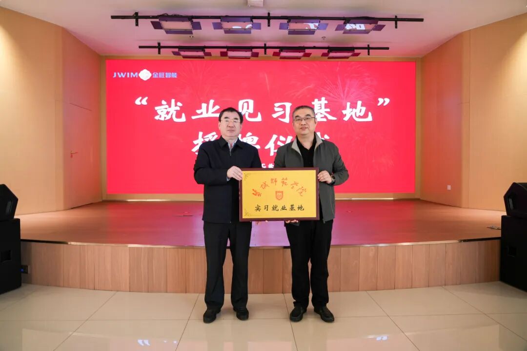 司马总在接牌后表示:“‘就业见习基地’的落地,是双方合作的重要里程碑。我们将为盐城师院学子提供从‘实习—就业—成长’的全周期培养通道,让每一位见习学生都能在金旺智能的平台上实现职业价值。” 庞副校长则强调:“这块牌匾是责任,更是动力。学校将以此为契机,优化人才培养方案,让更多学生在金旺智能的实践中成长为‘接地气、懂产业、能创新’的应用型人才。”
