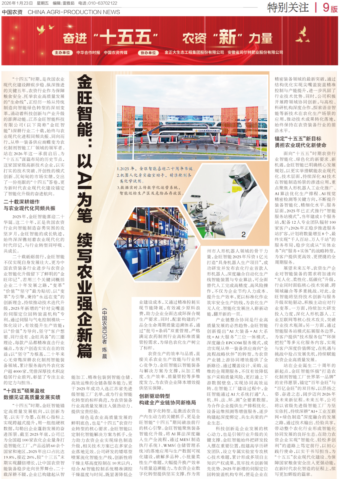 近日,《中国农资》传媒刊发《奋进“十五五” 农资“新”力量》专题报道,系统梳理农资行业在“十四五”期间的转型脉络,并前瞻“十五五”发展方向。作为报道中重点关注的创新企业,我司不仅是一份行业发展的“样本”,更在实践中读懂了政策的深层逻辑,完成了一场从“智能制造践行者”到“智慧农业系统服务商”的跨越。