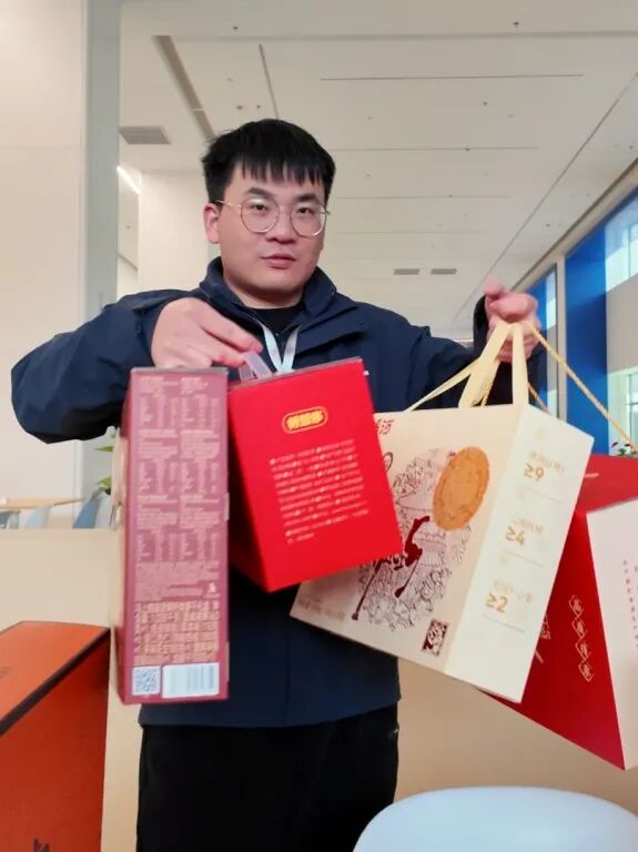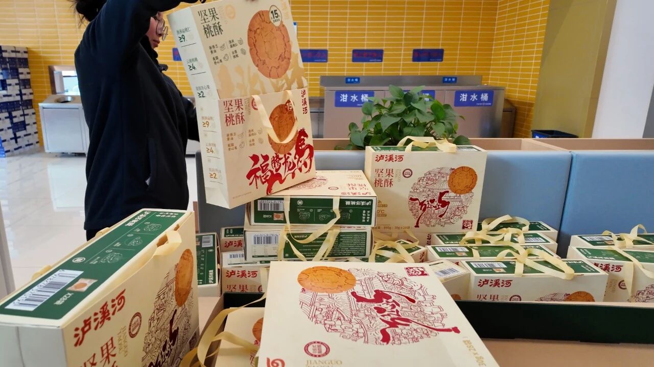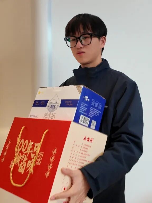 金旺智能的员工们陆续收到了一份沉甸甸的新春礼盒。没有繁复的仪式,只有朴素的传递——牛奶、坚果、水果、泸溪河桃酥、五香居、好想你枣。