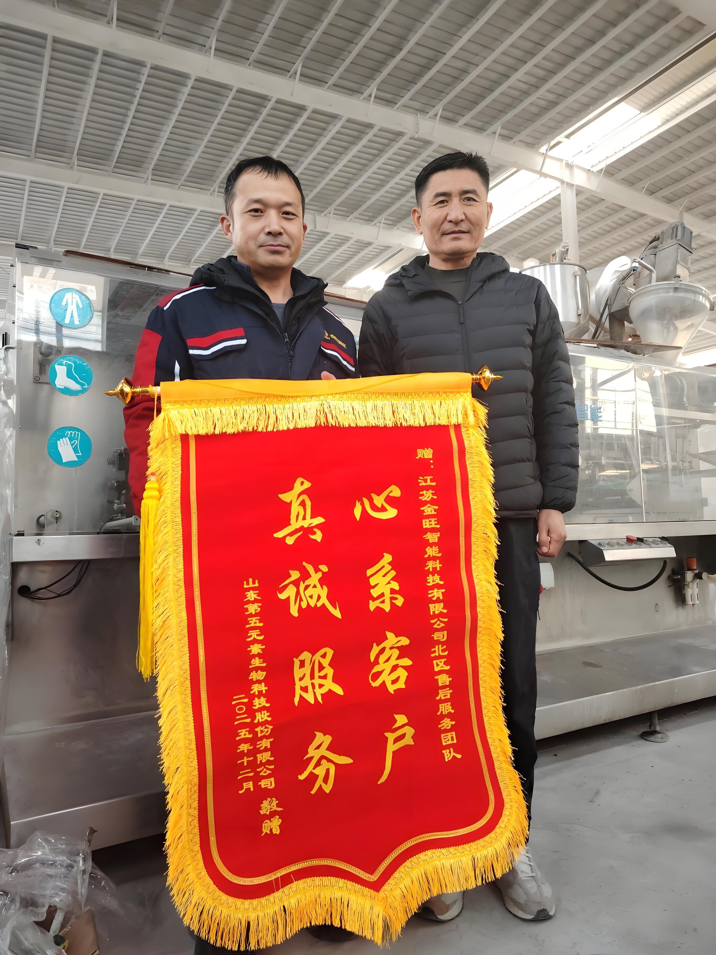 一面题有 “技精于专暖人心,业精于勤传帮带” 的锦旗,一段客户自发制作的感谢视频,从合作现场送至金旺智能,这份暖心认可,不仅是对一次标杆服务的肯定,更是金旺数十年坚守客户第一、以专业服务为客户创造超预期价值的最佳见证。