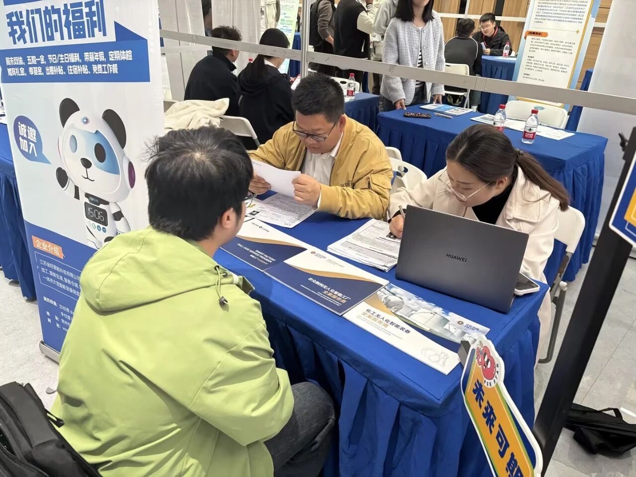 金旺智能展位前人头攒动,众多博士、硕士及本科毕业生前来咨询、投递简历。招聘团队现场进行简历初筛与初步面试,认真评估每位候选人的专业素养与发展潜力。同时,团队还热心为大三学生答疑解惑,分享行业趋势、求职技巧与职业规划,帮助学子明晰方向、从容就业。活动当天,公司共收到高质量简历30余份,涵盖机械、电气、自动化、机器人、外语等多个专业方向。